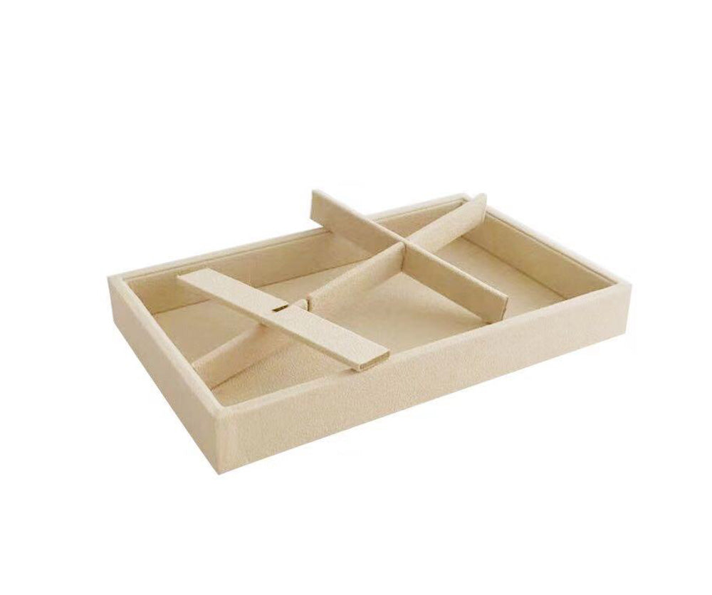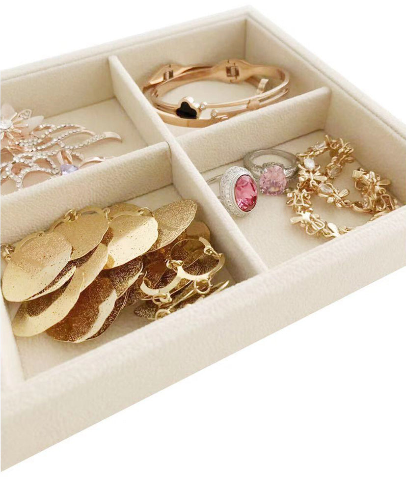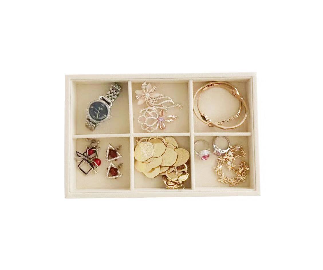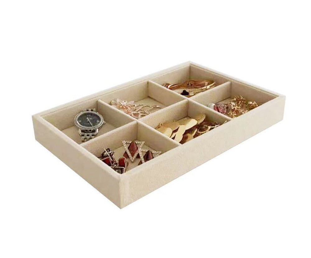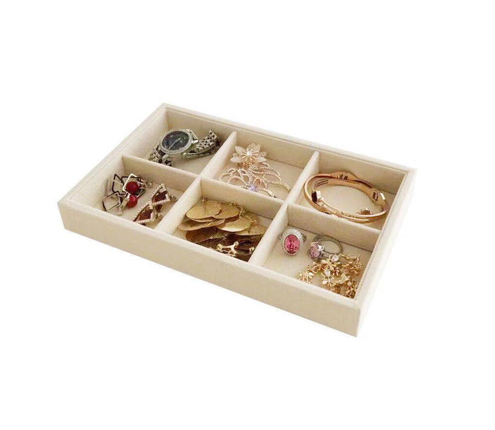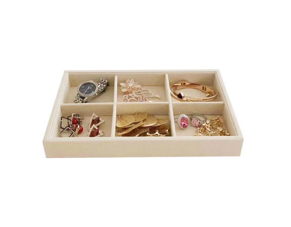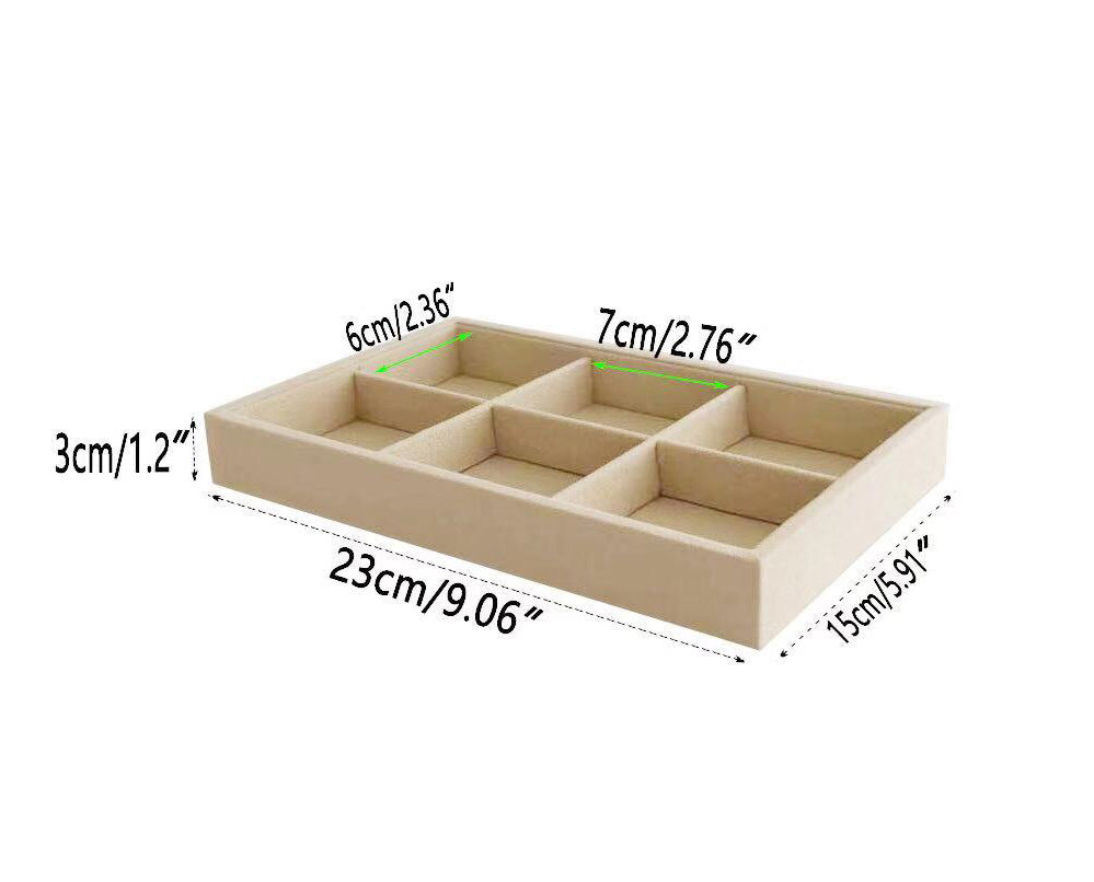 Small 6 Grid Beige Velvet Jewelry Collection Storage Tray
