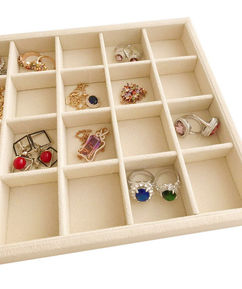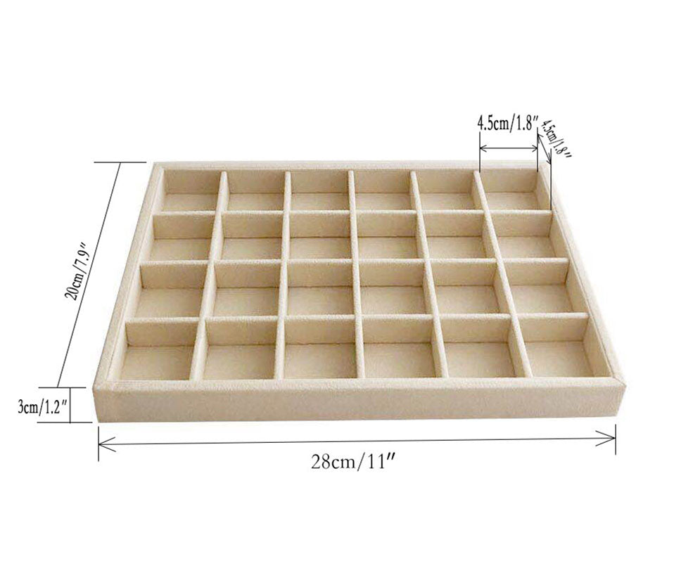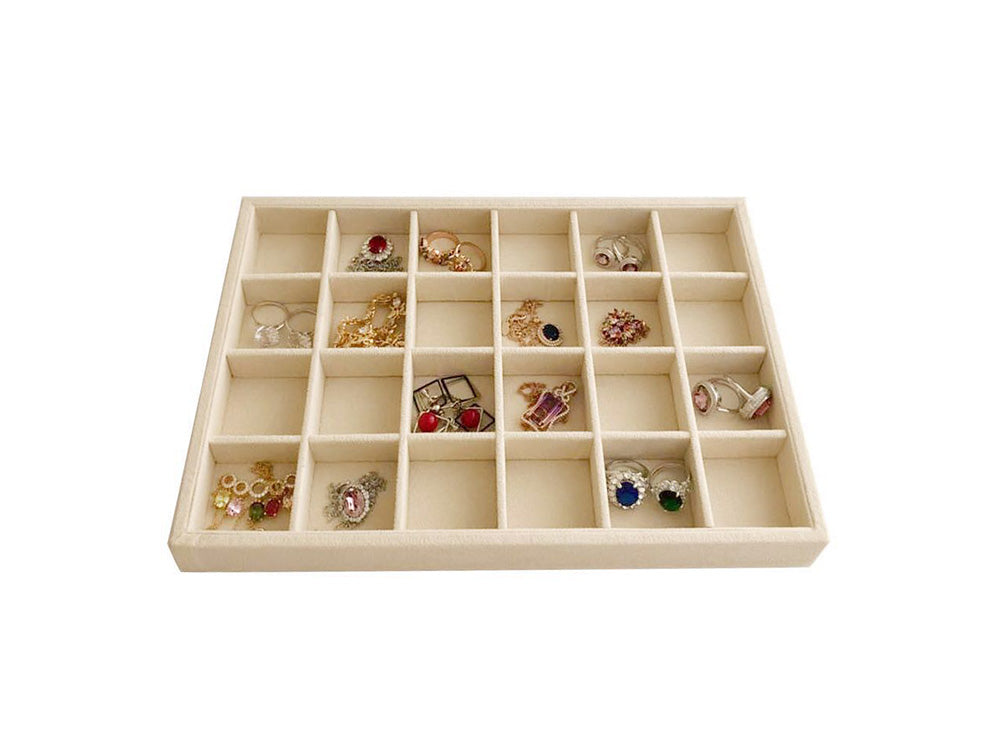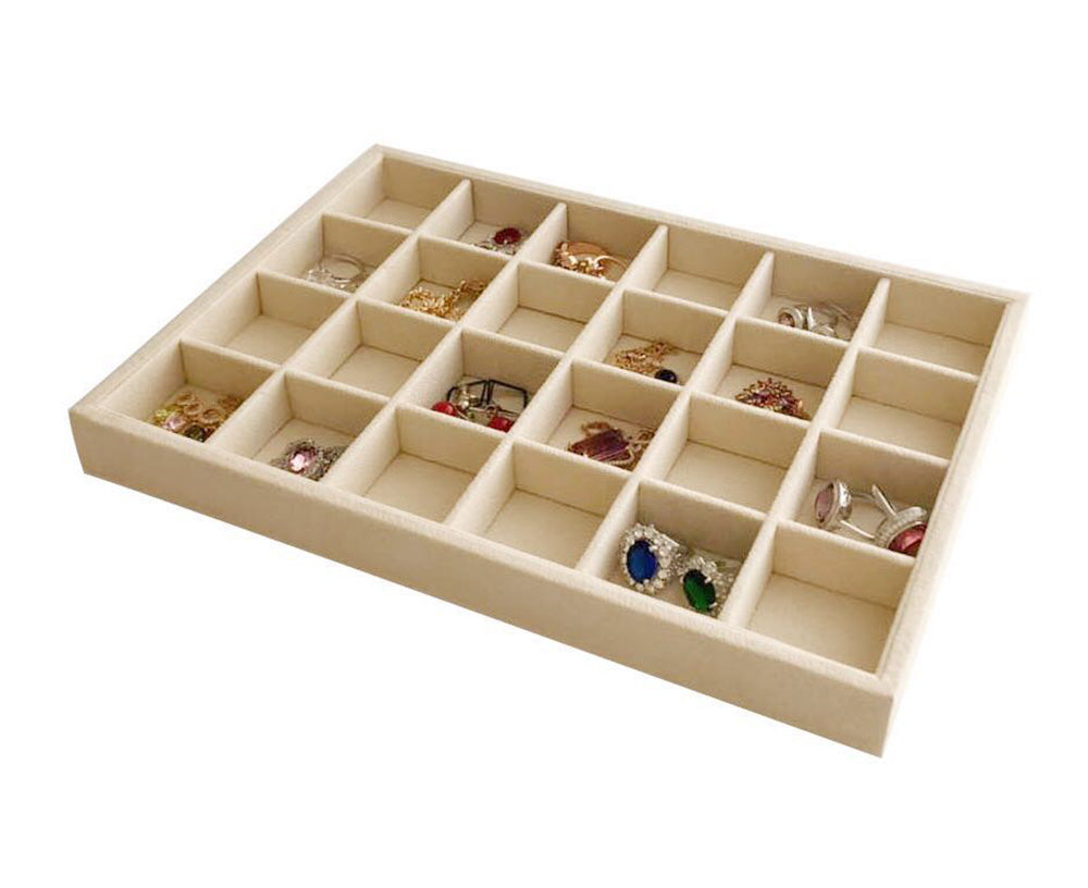 Medium Beige Jewelry Organizer Tray 24-Grid Premium Grade Drawer Inserts Stackable