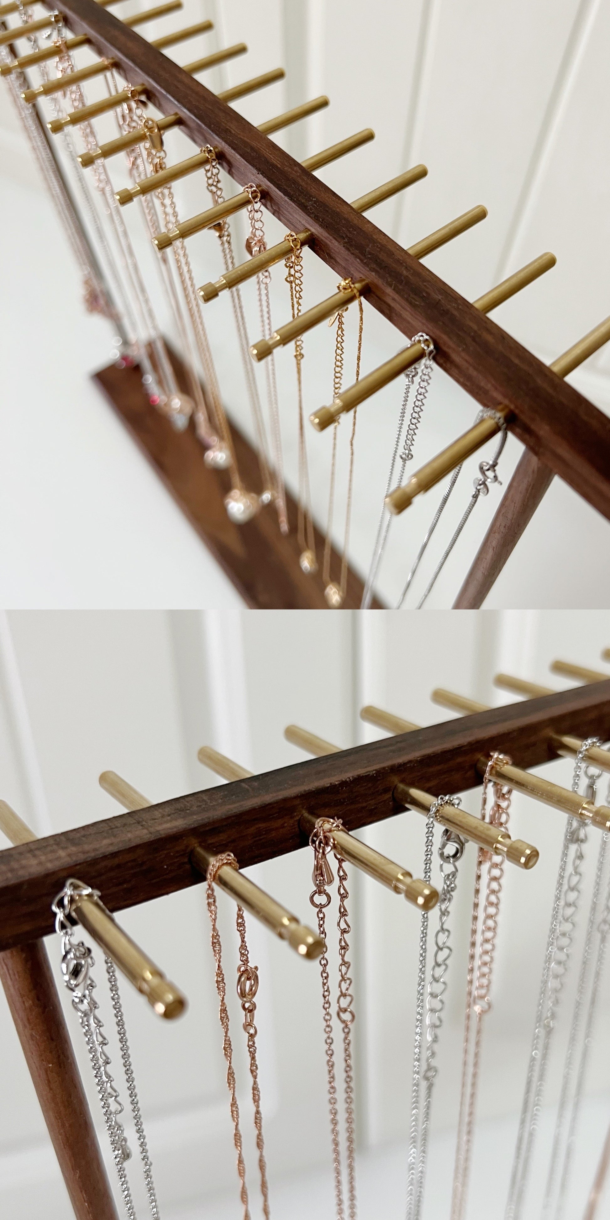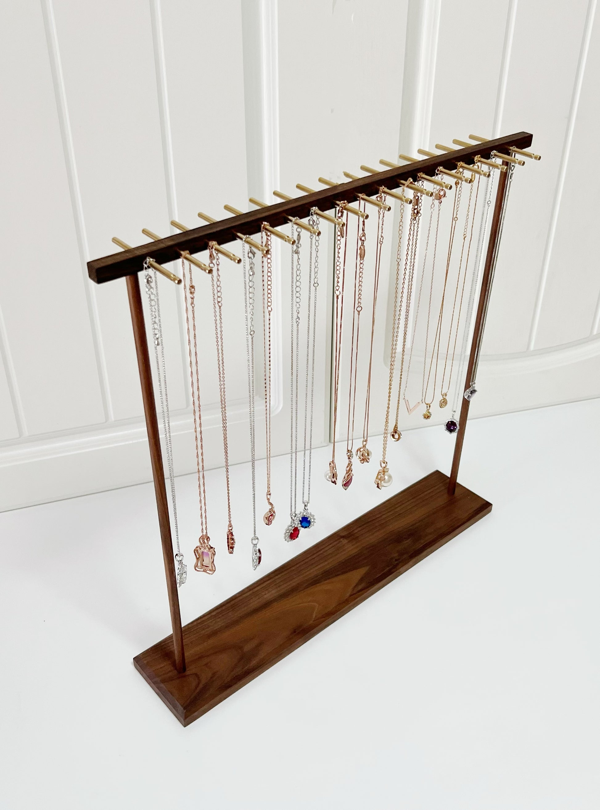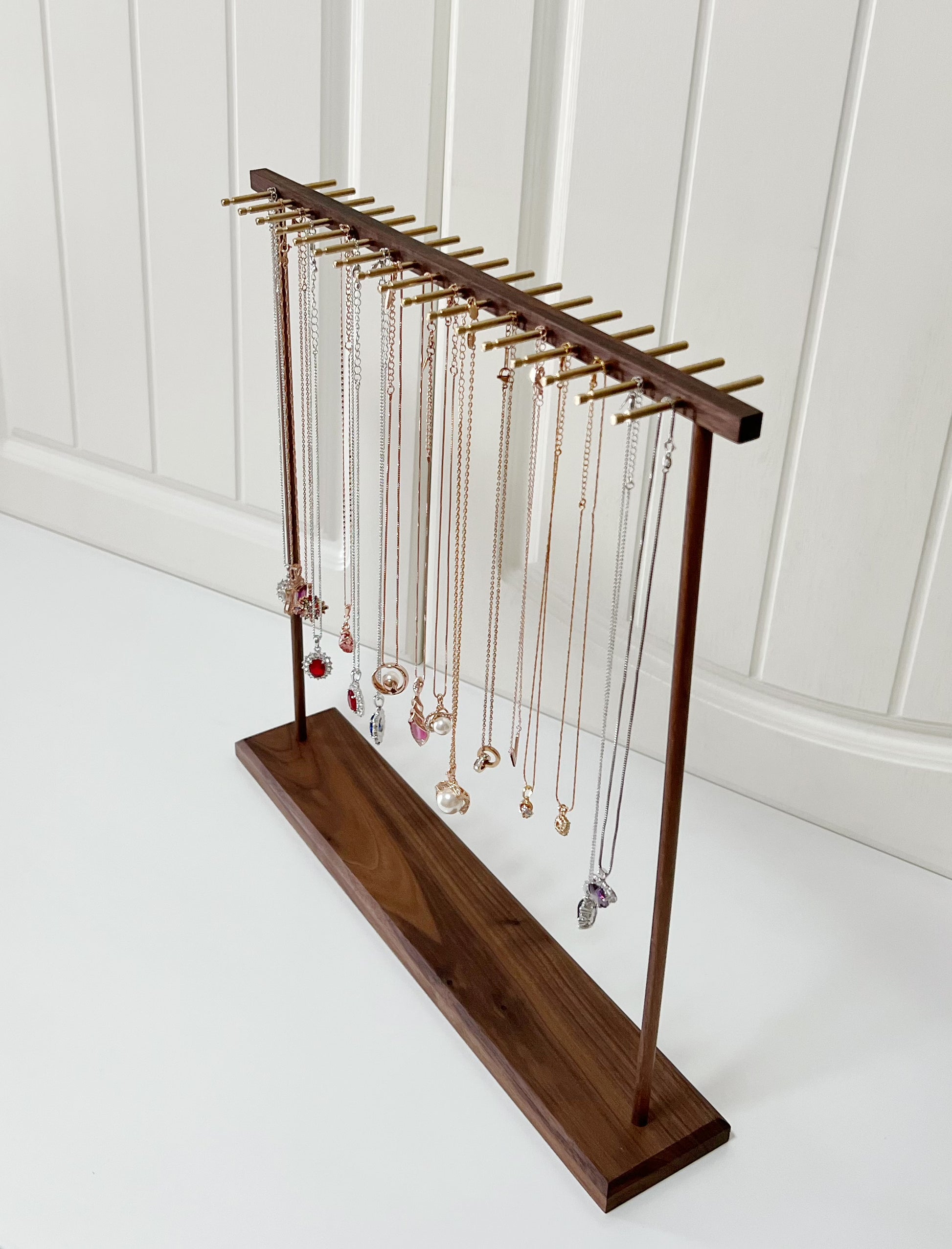 Walnut Wood Brass Pendant Necklace Organizer Stand (Large)