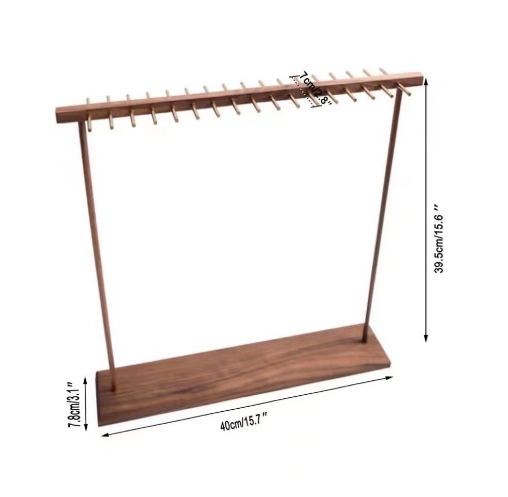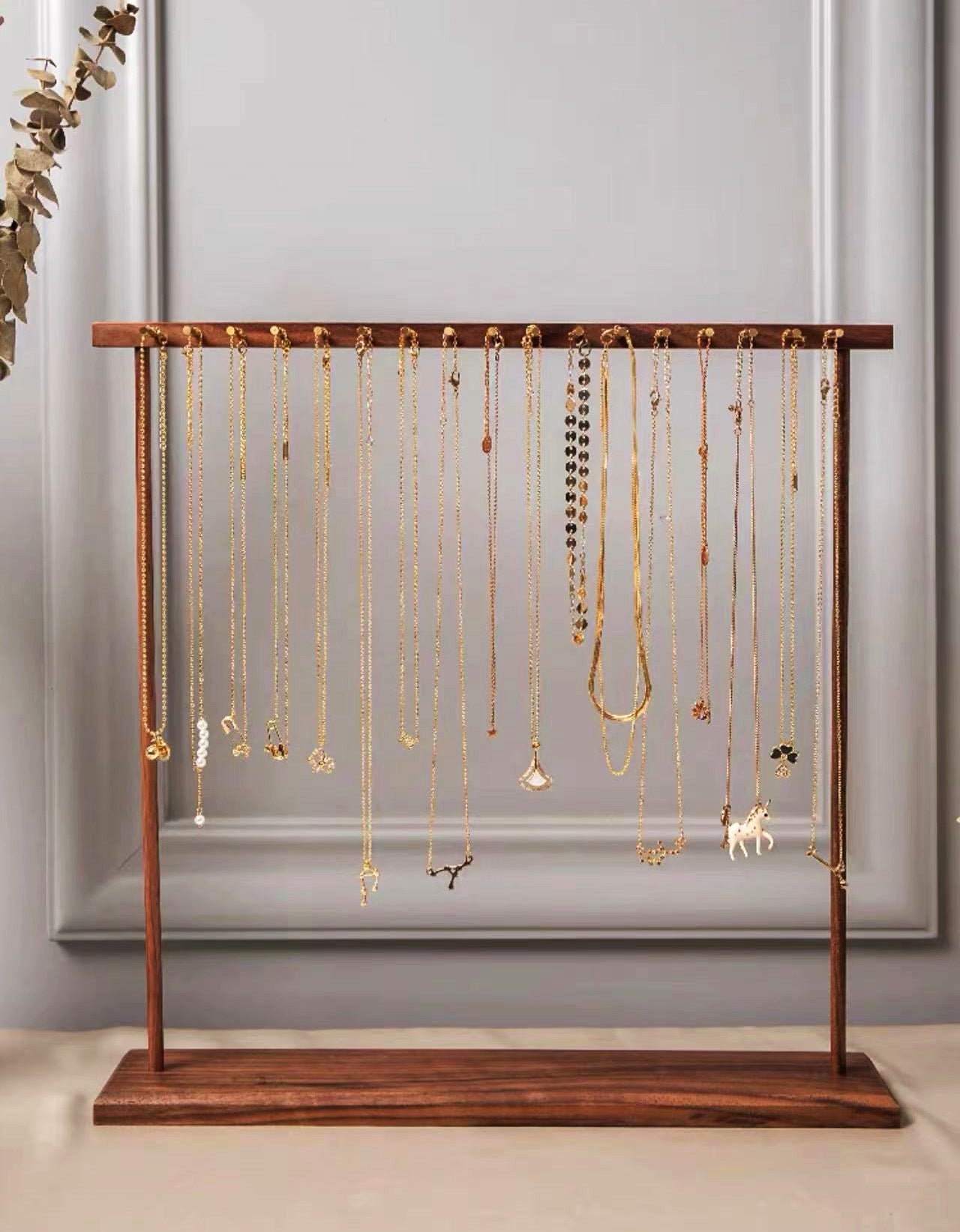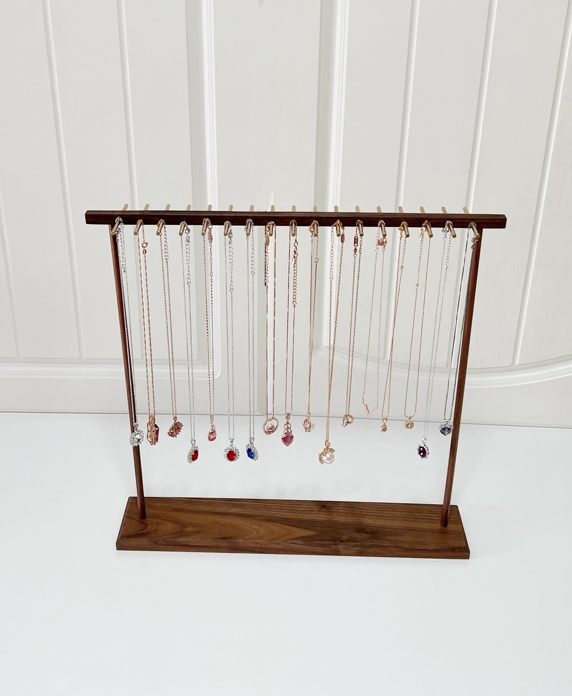 Walnut Wood Brass Pendant Necklace Organizer Stand (Large)